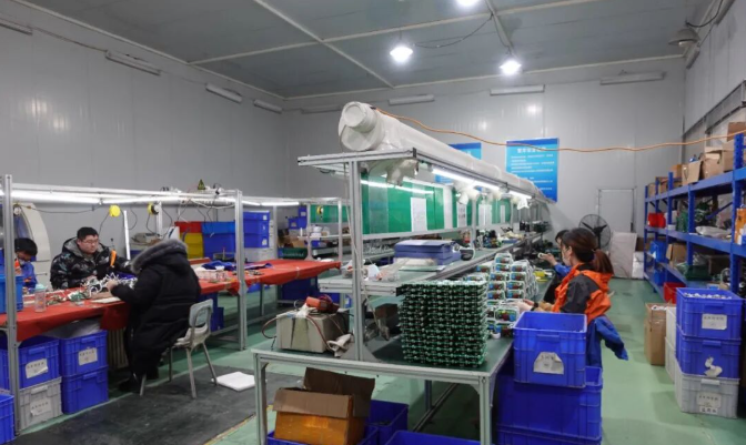 钴得暖业的职工在曹妃甸生产基地的车间内生产自主研发的电暖气温度控制器。